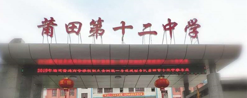 莆田第十二中学坐落在华亭坡上,北偎三紫山,南揽木兰溪,毗邻华亭镇人民政府,风景优美,交通便利。学校创建于1957年,原名“华亭附中”,1959年莆田县人民政府定名为“莆田第十二中学”,70年代起先后易名为“华亭五七中学”、“华亭中学”、“莆田华亭第一中学”,2002年区划后,再度更名为“莆田第十二中学”。五十七年的栉风沐雨,学校如今已发展成较具规模的省二级达标中学。现校园占地80.1亩,校舍面积39427平方米;教职工229人,其中专任教师223人,高级教师54人,一级教师91人;在校学生共2600多人。学校办学质量稳步提高,誉满莆阳大地,培养了数以万计的毕业生,涌现出以中科院院士洪茂椿、留德卫星测控专家许国昌、留法博士林青龙等为代表的一大批出类拔萃的优秀人才。