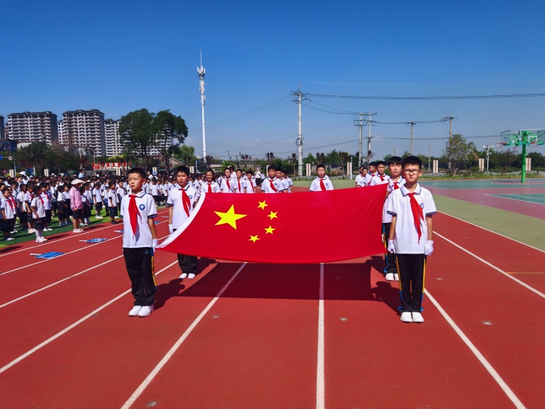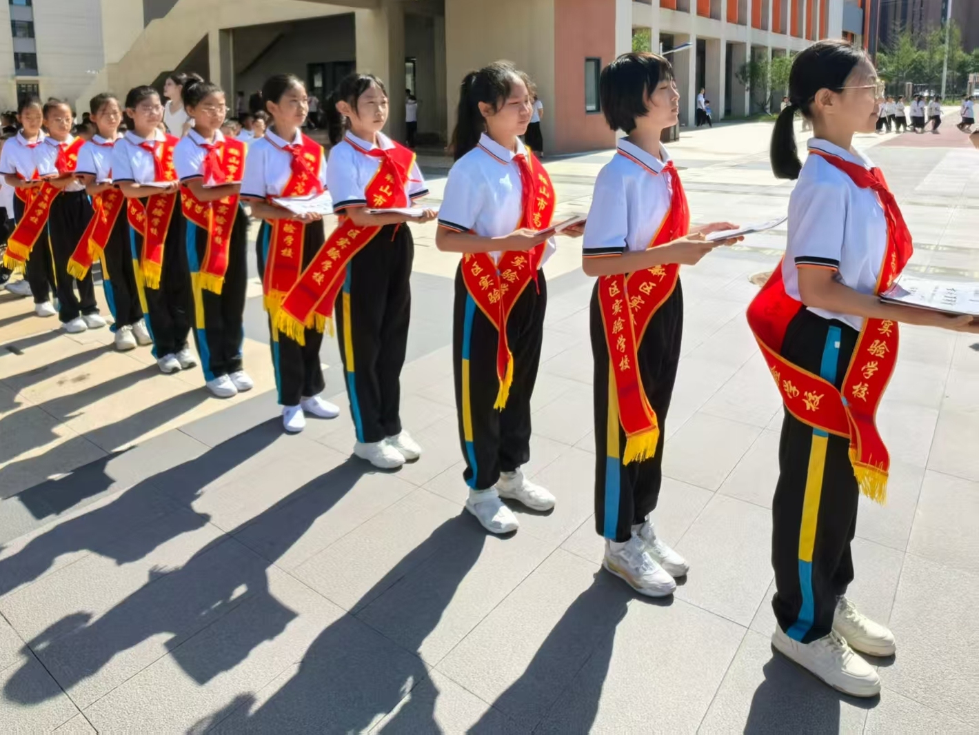 伴随着激昂的乐曲,开学典礼庄严的拉开帷幕。国旗班的孩子们迈着坚定有力的步伐出旗,鲜红的旗帜在阳光下熠熠生辉,彰显着实验学子们昂扬向上的精神风貌。