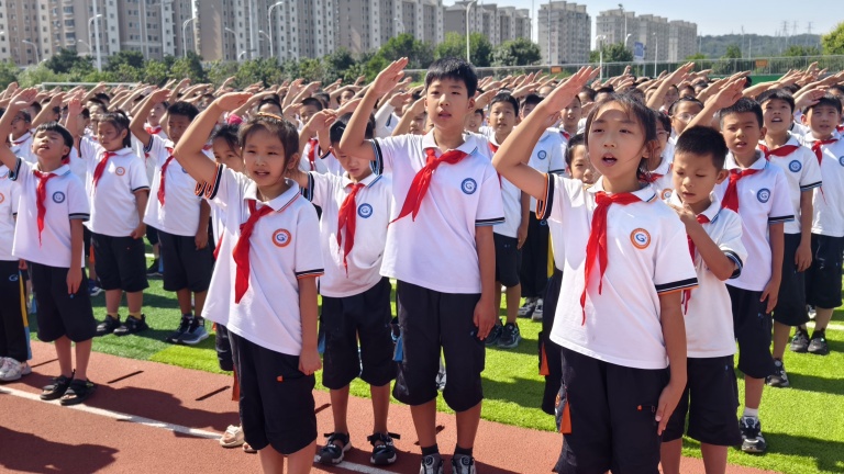 朝阳初上,浸染着新学期的希望,秋风再起,吹拂着新起点的梦想。在全面贯彻党的教育方针、落实立德树人根本任务的时代坐标下,鞍山市高新区实验学校以“为党育人、为国育才”为初心,于2025年9月9日上午隆重举行未来校区新学期开学典礼。全体师生齐聚未来校区的操场,怀揣对知识的渴望与对未来的憧憬,在“礼健智诚”的校训指引下,共同开启以“五育并举 科创强校”为底色的崭新育人篇章。