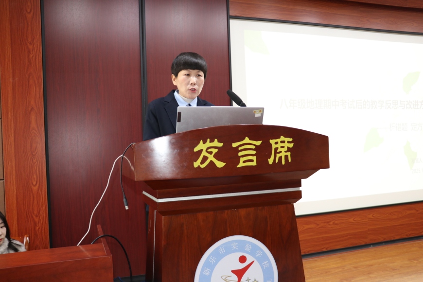 以《期中考试后的教学反思与改进方向》为题,聚焦地理学科的教学实践与优化。她指出,学生在区域地理学习中存在 “重记忆、轻理解” 的问题,对地理图表的判读能力不足,且缺乏对地理现象的综合分析思维。基于此,郭老师明确三大改进方向:一是强化图表教学,将地图、统计图等可视化工具贯穿课堂,培养学生读图、析图能力;二是优化知识讲解逻辑,结合生活实际案例,帮助学生理解地理原理与现实应用的关联;三是增加实践活动,通过户外观察、地理研学等方式,提升学生的地理实践力。