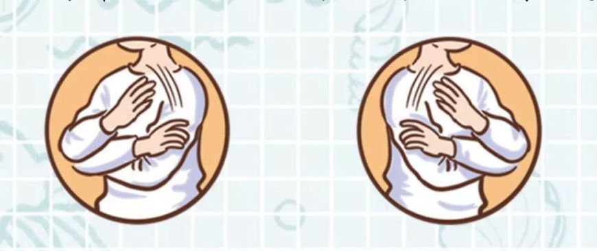 首先双臂在胸前交叉,右手在左侧、左手在右侧,轻抱自己对侧的肩膀。