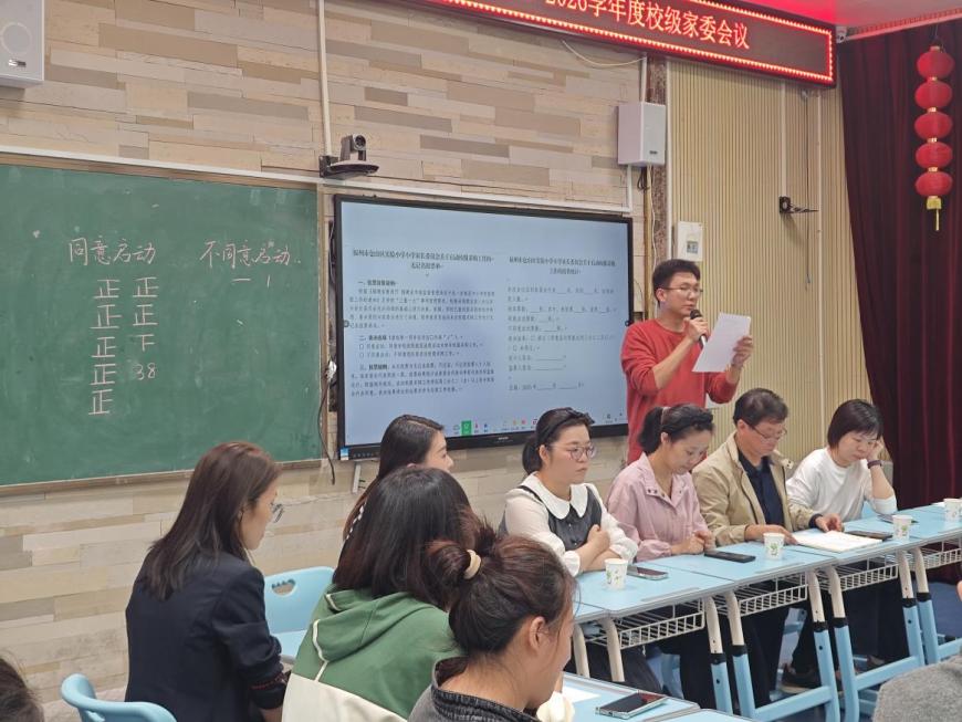 会议现场对校服征订方案进行表决,39位家委中38票同意、1票反对,方案获通过。学校还将组建家长膳食委员会,进一步加强食品安全监督,共同守护学生“舌尖上的安全”。