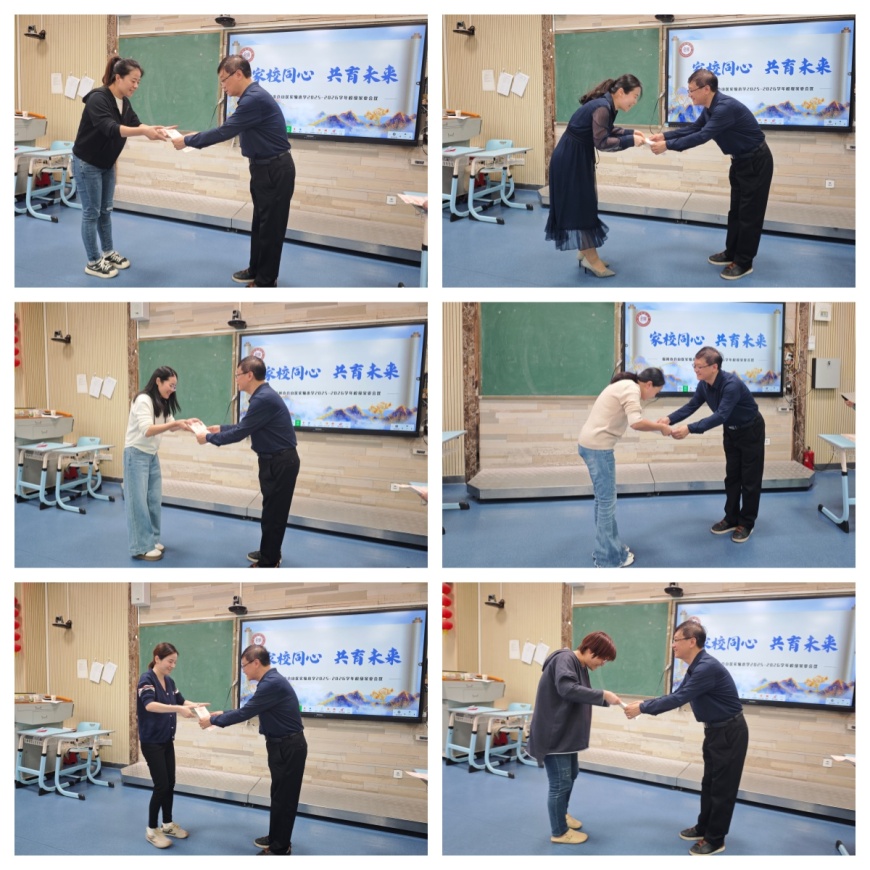 会议最后举行聘书颁发仪式,陈孙义校长亲手将聘书送到每位家委手中。薄薄一纸,承载着学校的信任与期待。家委们郑重接过聘书,纷纷表示将认真履行职责,充分发挥桥梁作用,助力构建和谐、互信的家校关系。