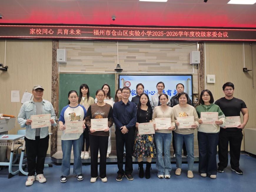 为深化家校合作、凝聚育人共识,福州市仓山区实验小学于2025年11月6日召开新学年校级家委工作会议。陈孙义校长、陈苏萍副校长、欧津副校长、德育处副主任林虹老师、少先队总辅导员欧杏老师、总务保卫处陈子浩老师及全体校级家委会成员共同参会,围绕家校协同育人展开深入交流,携手擘画学生成长新蓝图。