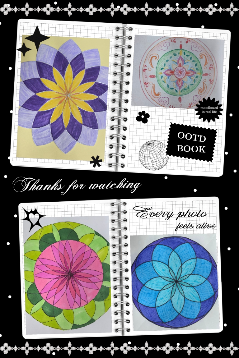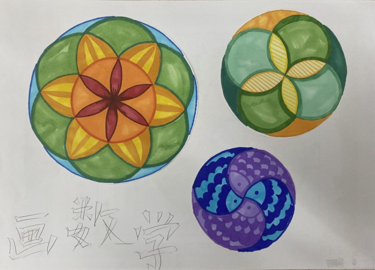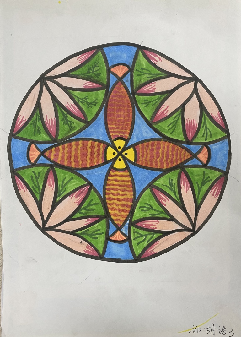第三阶段:创新突破。在掌握基本原理后,学生作品呈现出显著的技术提升与创意飞跃。曼陀罗式的辐射对称图案、基于斐波那契数列的螺旋构图、融合传统纹样的现代几何表达等作品纷纷涌现,展现了圆形几何近乎无限的创作可能。