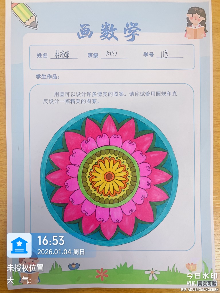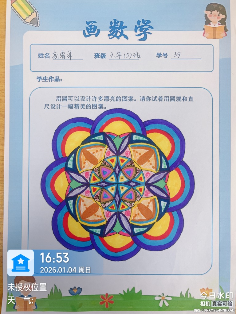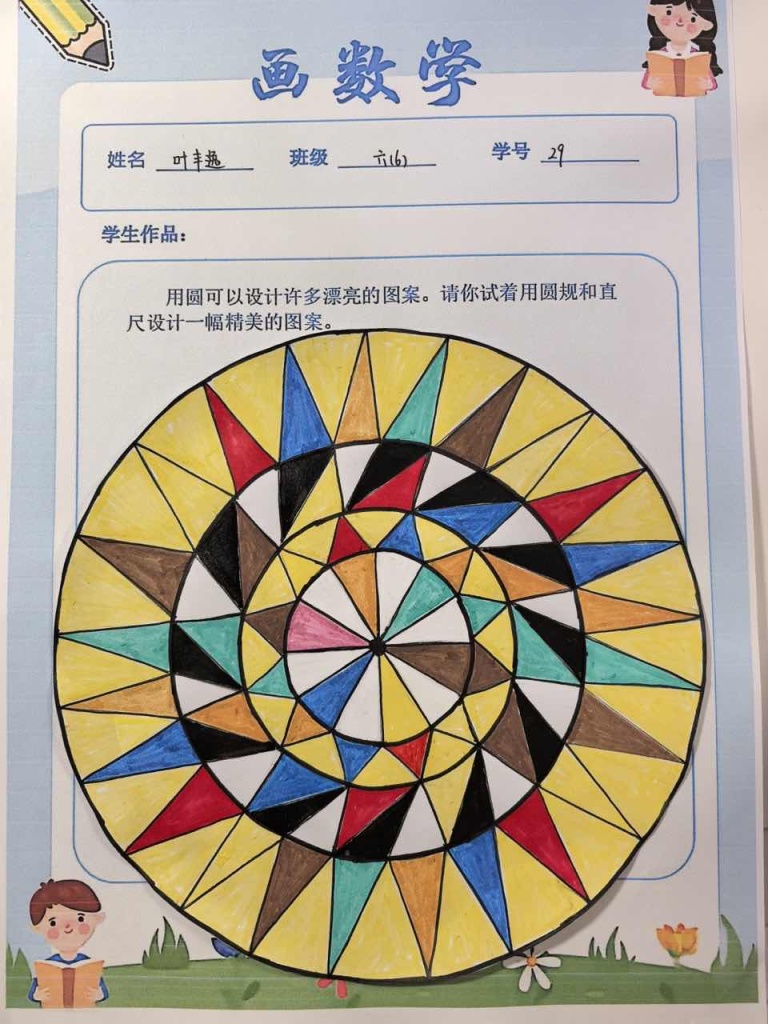 最终呈现的作品集不仅是美学的展示,更是六年级学生数学思维发展的可视化记录。这些图案背后,圆周率不再是冰冷的数字,对称不再只是书本定义,而是成为创造美的工具。此次实践的成功表明,当数学离开纯抽象领域进入创意空间时,不仅能深化概念理解,更能激发学生面对复杂挑战的韧性。这种在约束中创造无限可能的体验,为学生未来的学习生涯提供了可迁移的思维框架——真正的成长并非避免困难,而是在应对挑战的过程中拓展自身能力的边界。