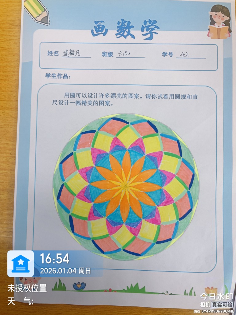 近期,我校六年级数学实践活动精彩启幕,以“用圆设计美丽图案”为主题的创意作业圆满完成。此次活动打破学科壁垒,将圆的圆心、半径、直径等几何原理,与对称、构图、色彩搭配等艺术创作要素有机融合,让学生在动手实践中解锁数学的别样魅力。