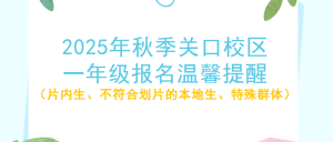 2025年秋季关口校区一年级报名温馨提醒(片内生、不符合划片的本地生、特殊群体)