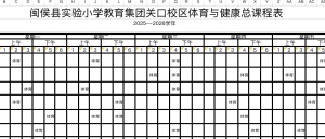 闽侯县实验小学教育集团关口校区2025~2026学年第一学期体育与健康总课程表