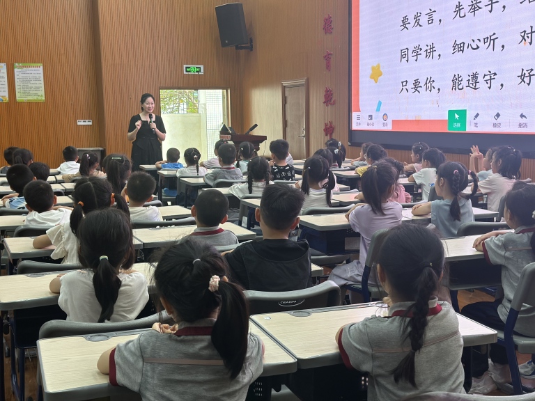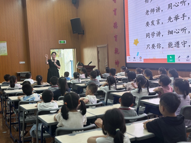 培训全程节奏紧凑、形式多元。王佳老师以一年级8班学生为实践对象,开展课堂常规养成示范指导,让参会教师直观学习实操技巧;随后的互动研讨环节,教师们积极提问、分享困惑,王佳老师逐一解答,现场交流氛围热烈;学校党支部书记、校长刘智章总结培训重点,明确后续低段习惯培养工作方向,要求教师结合讲座内容优化班级培养方案。