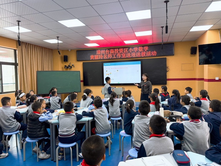 秋之美,在于积累与收获;教之美,在于钻研与提升。为充分发挥名师工作室的示范、引领、辐射作用,提升数学教师的教学水平,11月19日,漳州台商投资区小学数学黄丽玲名师工作室到闽师大台商区附小开展送培送教活动。