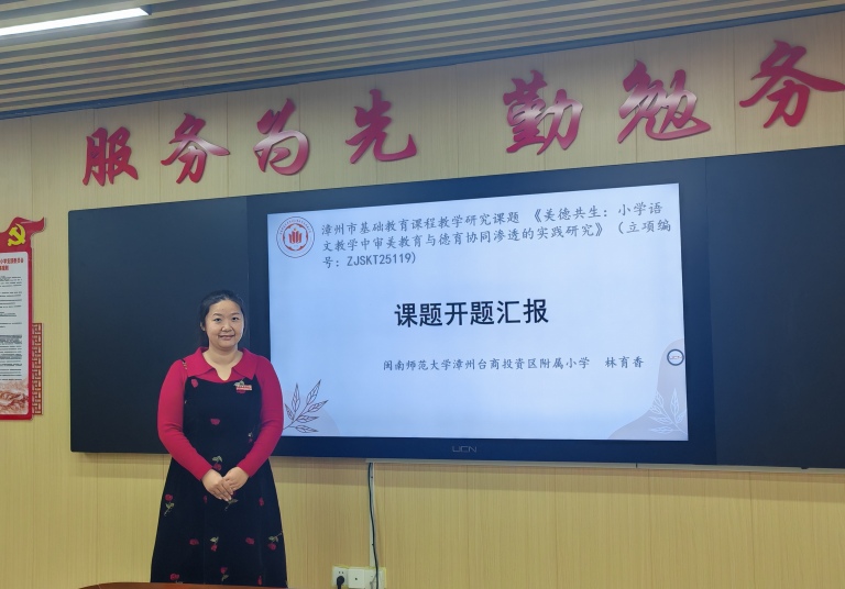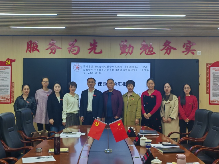研思聚力,笃行致远。为探索小学语文教学中审美教育与德育的深度融合路径,赋能学生全面发展,2025年12月10日,《美德共生:小学语文教学中审美教育与德育协同渗透的实践研究》市级课题开题报告会在闽南师范大学漳州台商投资区附属小学党建室隆重举行。: