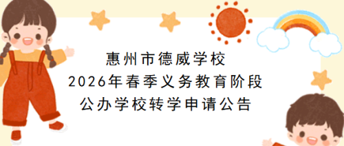 根据惠城区教育局下发的关于2026年春季义务教育阶段公办学校转学申请须知,现将惠州市德威学校转学申请事项公告如下: