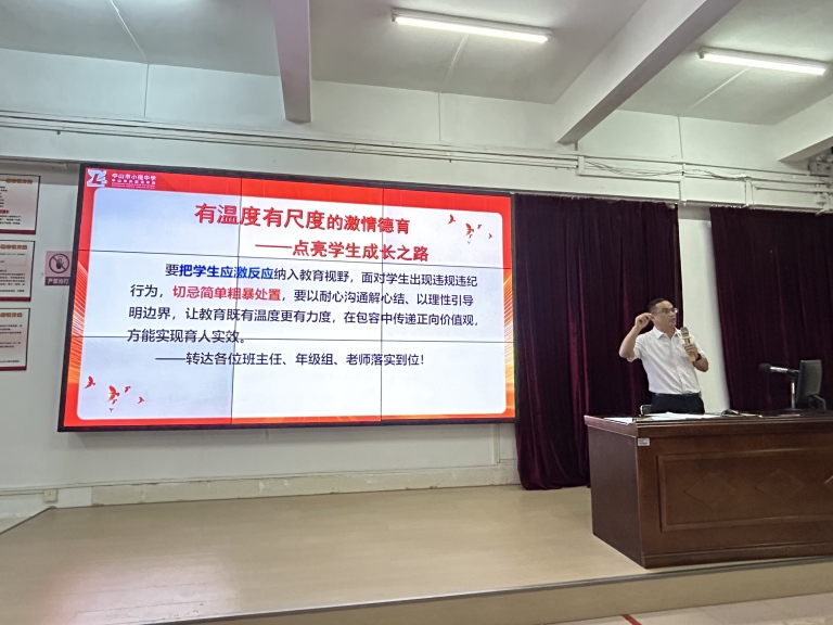 会议最后,德育处主任黄海如聚焦班主任的工作常规,提出了明确要求。他强调,班主任需深耕班级文化建设,培育学生群体意识,引导学生树立正确价值取向。"学生应当心存敬畏,行有所止",海如主任的叮嘱掷地有声,为班主任日常管理划定核心准则,也为学生成长指明方向。