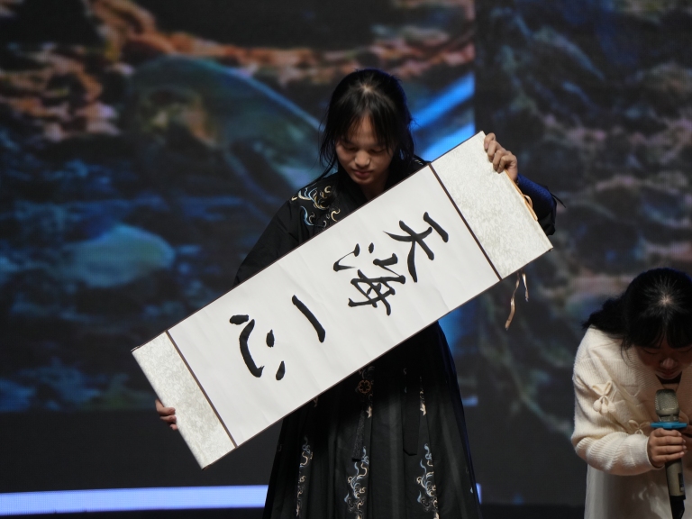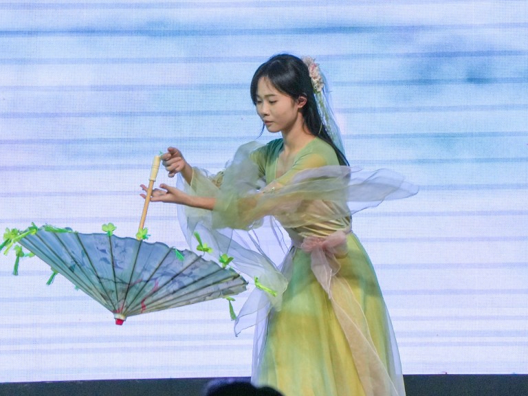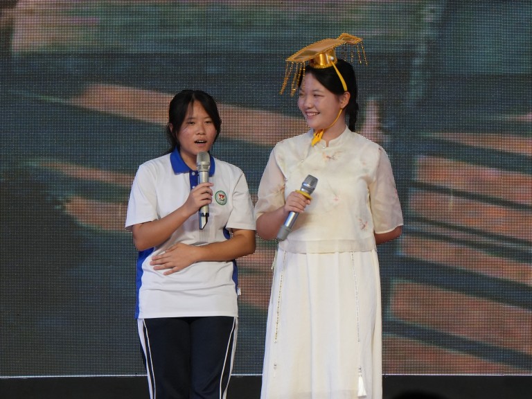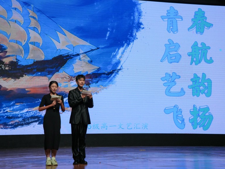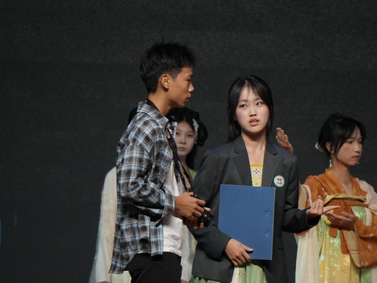 语言类节目同样亮点纷呈。小品聚焦校园生活与青春成长,幽默诙谐的台词、生动传神的表演让观众捧腹大笑的同时,也引发了情感共鸣;话剧节目则通过精心编排的剧情与细腻的演技,再现经典片段与原创故事,传递正能量;走秀环节中,同学们身着创意服饰,或展现国风古韵,或演绎时尚潮流,自信的步伐与独特的创意赢得满堂喝彩;而别出心裁的影子剧,以光影为笔、故事为墨,在黑暗中勾勒出奇幻画面,带来了别样的视觉冲击。46个节目各具特色、衔接流畅,从编排到呈现都凝聚着同学们的巧思与汗水,展现了高一学子综合素质与无限潜能。