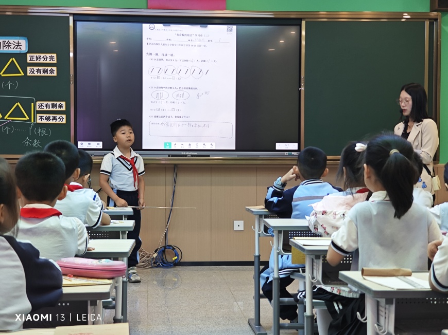 《有余数的除法》这一数学概念往往是学生难以全面把握的难点,如何更有效地深化他们对“余数”概念的理解成为我们关注的重点。我们一直在寻求借助丰富多样的教学活动和结合学生既有经验,帮助他们构建起有余数除法的认知模型。特别地,结构化学习包含除和等分除是我们设计教学活动时的核心考量。为此,我们巧妙地利用学生已有的基础知识,设计了摆小棒的趣味活动。通过引导学生参与摆三角形的实践操作,旨在让他们直观感受余数的存在和意义,从而加深对这一概念的理解。特别地,结构化学习包含除和等分除是我们设计教学活动时的核心考量。为此,我们巧妙地利用学生已有的基础知识,设计了摆小棒的趣味活动。通过引导学生参与摆三角形的实践操作,旨在让他们直观感受余数的存在和意义,从而加深对这一概念的理解。
