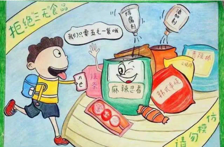 1.向孩子讲解食用“三无食品”和“垃圾食品”的危害性,不购买流动无证摊点和小摊贩卖的零食、“三无”产品等。
