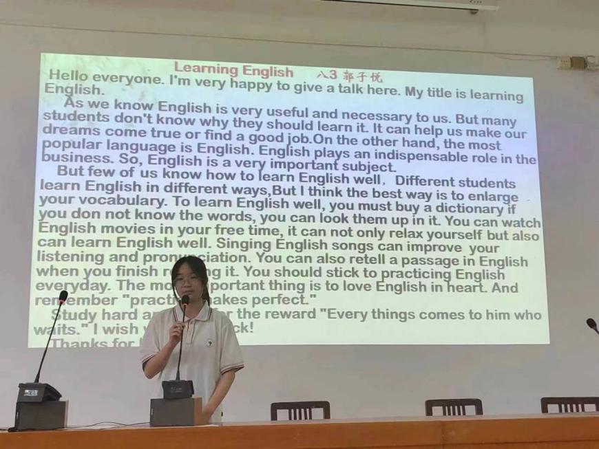 为进一步提高学生英语口语表达能力,丰富英语学科教育内涵,培养学生对英语学习的兴趣,同时为英语中考“人机对话”测试做好准备,4月19日仙游二中举行了八年段英语演讲比赛。通过初期选拔,共15位同学进入了本次比赛的决赛阶段。本次活动,由学校英语教研组长朱丽仙、八年级英语备课组长董进金老师主持,八年级全体英语教师共同担任比赛评委。