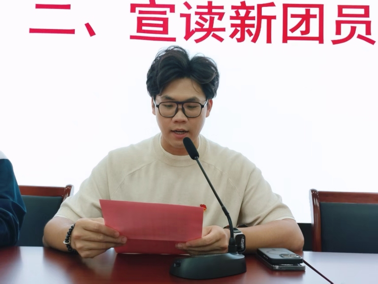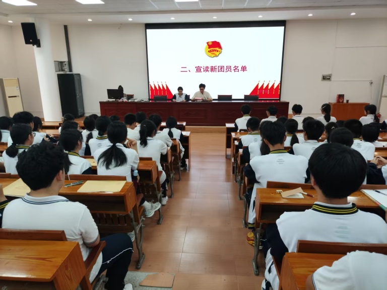 接着,团委老师郭梓杨宣读了新团员名单。念到名字的同学,脸上洋溢着自豪与激动,有序上台。这不仅仅是一个名字的宣读,更是一份责任与使命的传递。