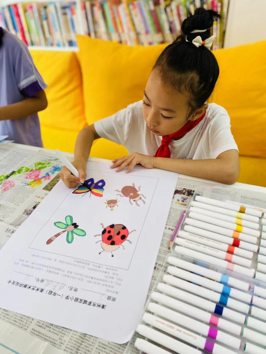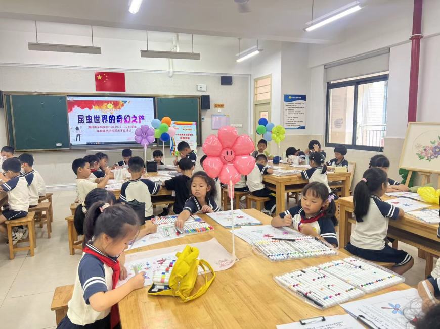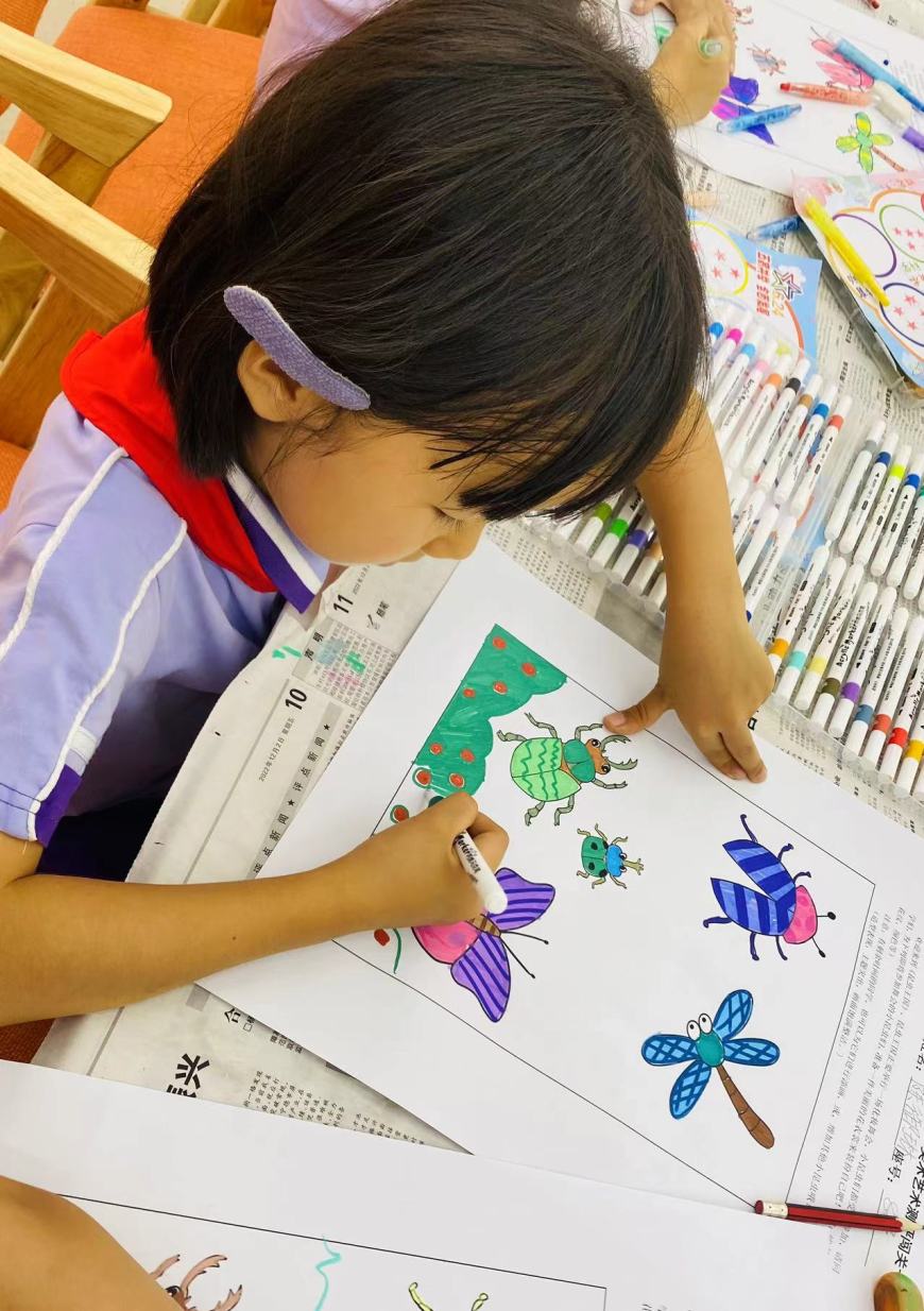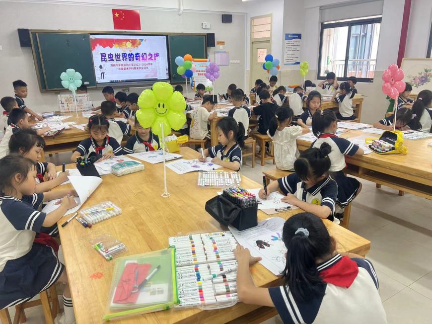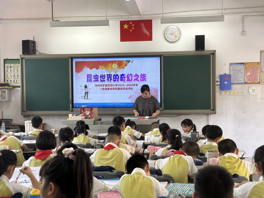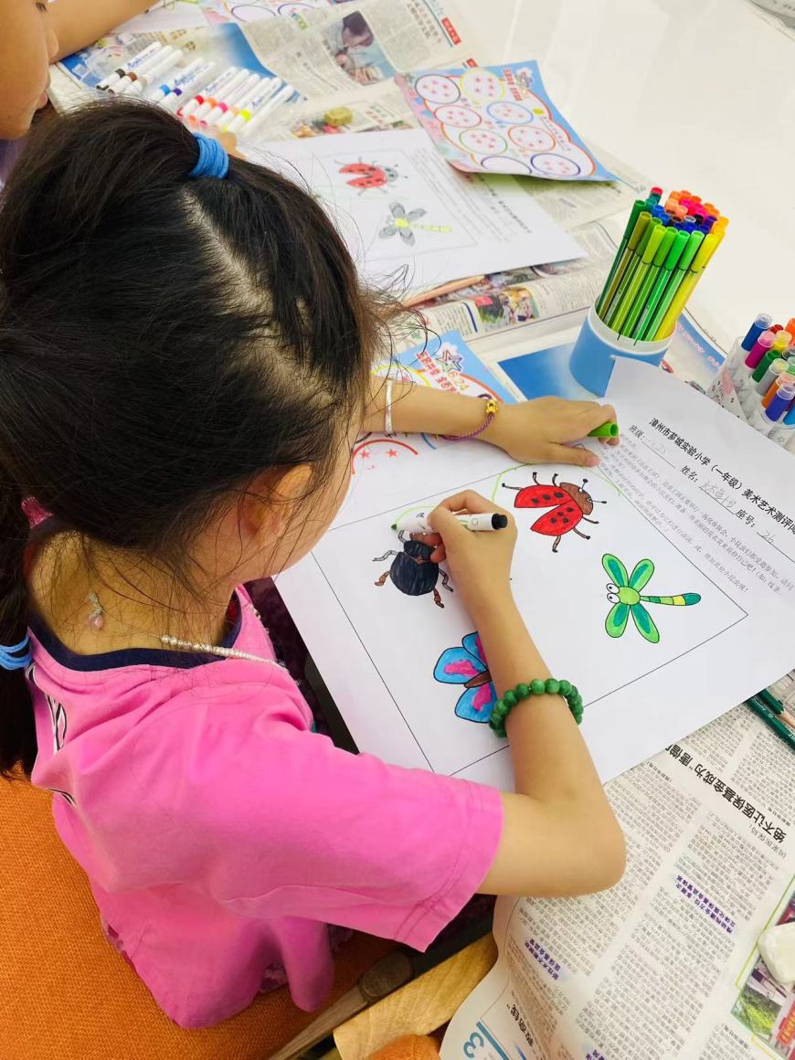 美术,是情感的流露、心灵的宣泄。我们在色彩斑斓的世界中寻找共鸣,抚慰内心深处的情感。为检验学生的艺术表现和创意实践能力,一二年级分别以昆虫王国和荷塘绘色2种实践操作的形式进行。