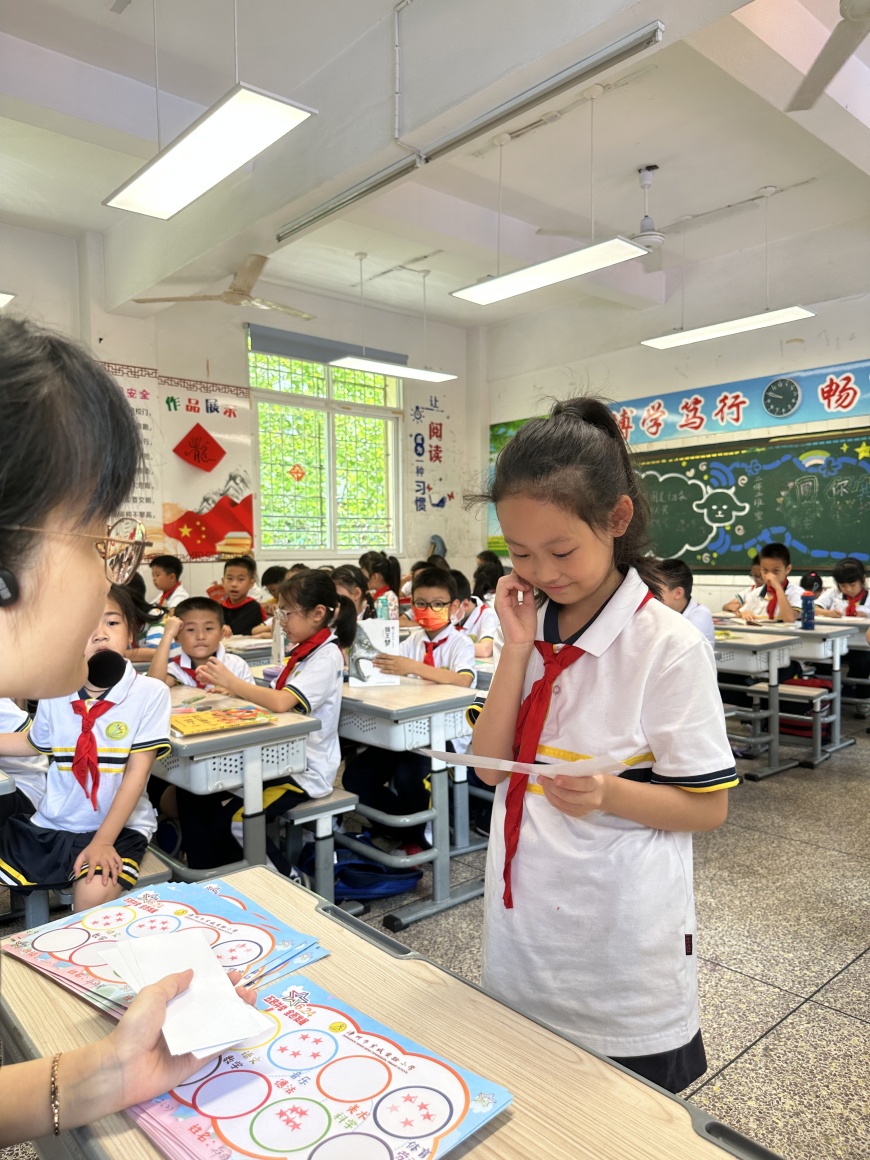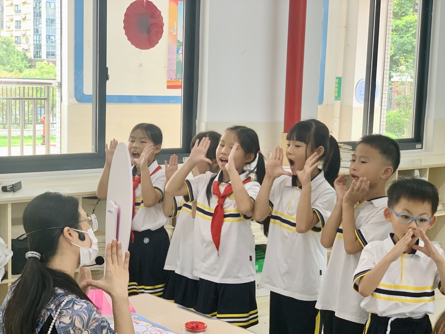 闯关游戏让同学们乐此不疲,每闯关成功一次孩子们都会获得相应的星星。孩子们声音响亮,咬字清晰,自信大方,乐在其中。