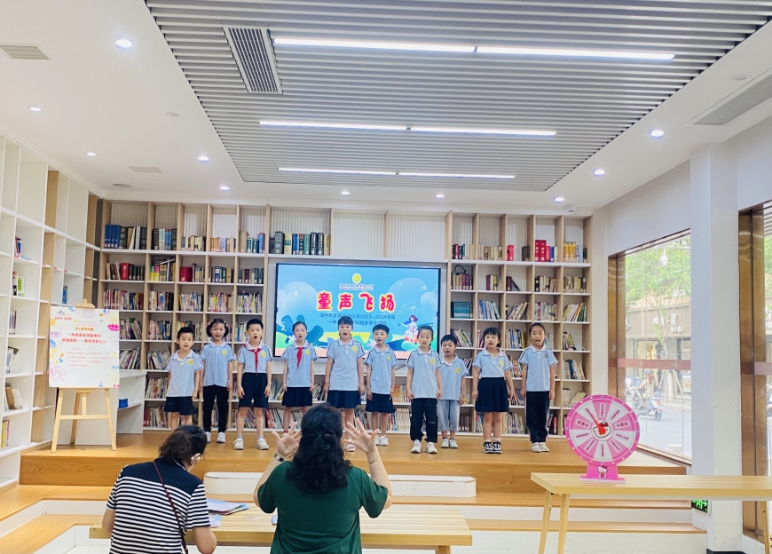 夏天的校园里当然少不了“百灵鸟”美妙的歌声,一只只“百灵鸟”打着节拍,唱响一首首歌曲,用自己稚嫩又洪亮的歌声展示着自己的风采。