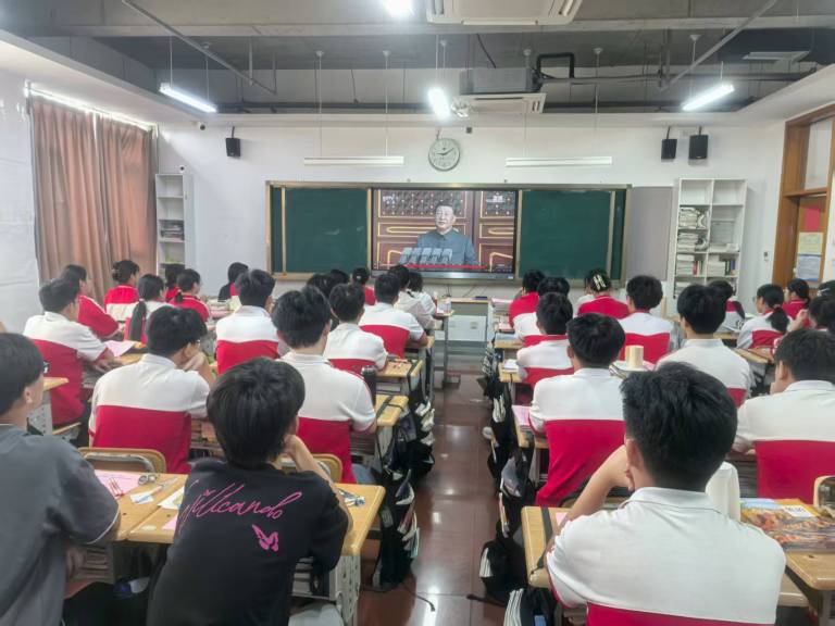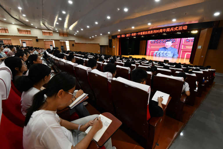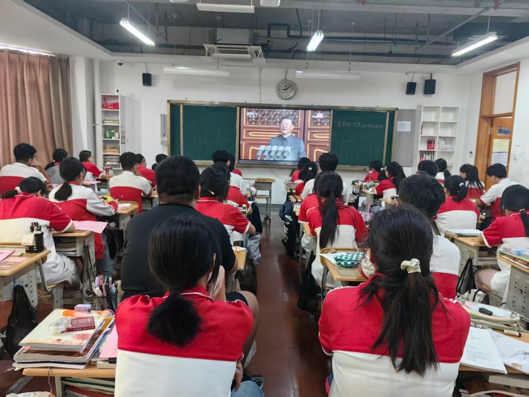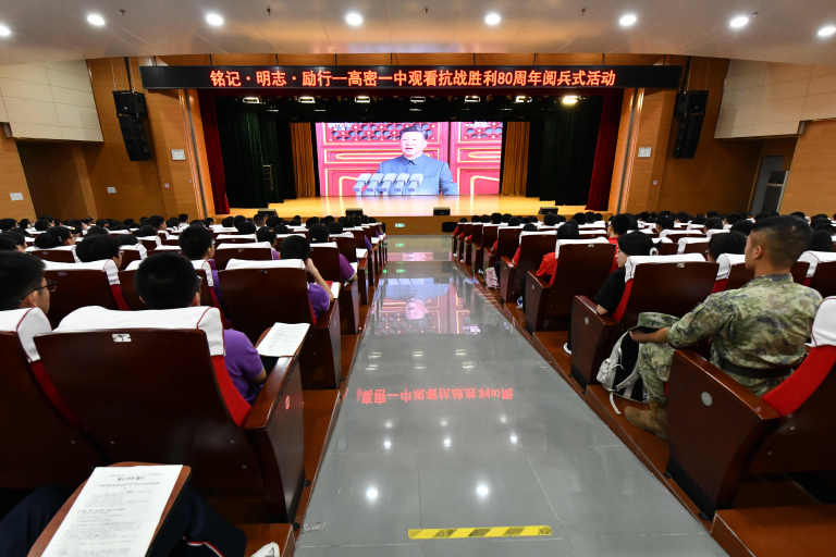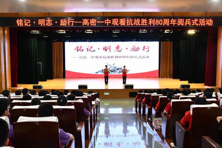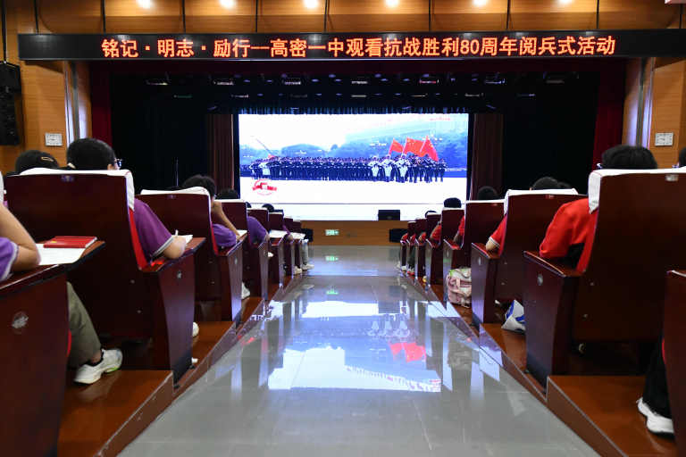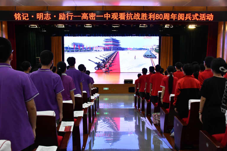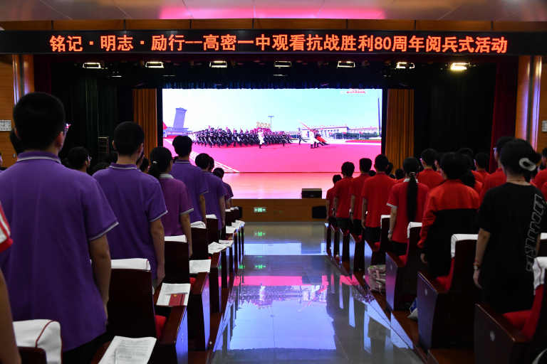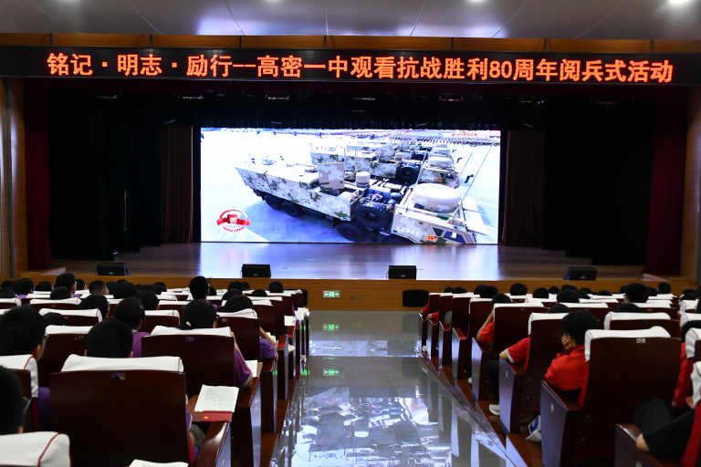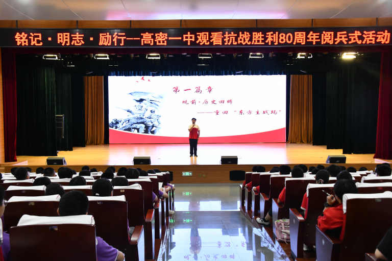 9月3日是中国人民抗日战争暨世界反法西斯战争胜利80周年纪念日。高密一中组织全体师生3600多人在启智剧场和各班教室见证了这一激动人心的历史时刻,师生们共同回顾那段艰苦卓绝的抗战岁月,缅怀革命先烈,传承伟大抗战精神。