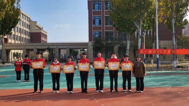 表彰环节将现场气氛推向高潮。“6S管理优秀班集体”“宿舍管理优秀班集体”和“学习品质优秀班集体”等奖项依次颁出,掌声如潮水般涌过操场。