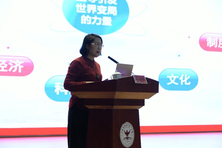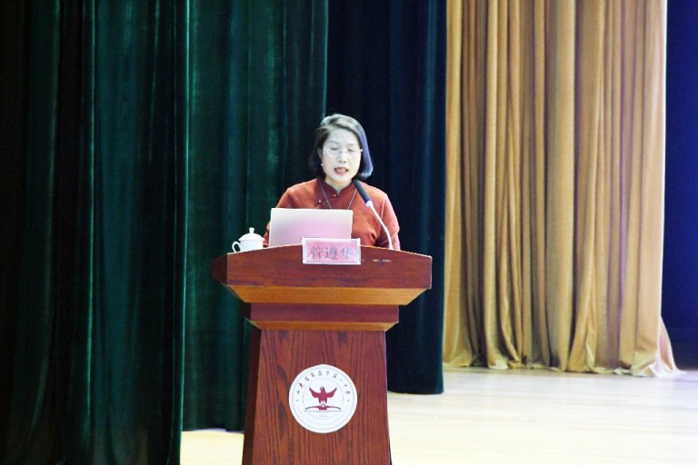本次活动特邀中共高密市委党校高级讲师、潍坊市宣讲专家库成员管遵华老师担任主讲。管老师以“习近平文化思想”为主题,从理论高度与实践深度出发,系统阐释其核心要义与实践要求,着重探讨如何将习近平文化思想与党的二十届四中全会精神深度融合,引导学生坚定文化自信、提升道德素养。