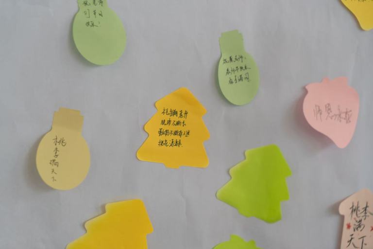 星期二,我校设置“致恩师”祝福墙。一面祝福墙,汇聚了一颗颗赤诚之心;一张便利贴,记录了一段段温暖故事。学生们把祝福写在小小方纸上,或简洁真挚,或饱含深情。五彩斑斓的便利贴在墙上连成一片爱的彩虹,见证着师生之间的深厚情谊,也让校园弥漫着感恩与温度。