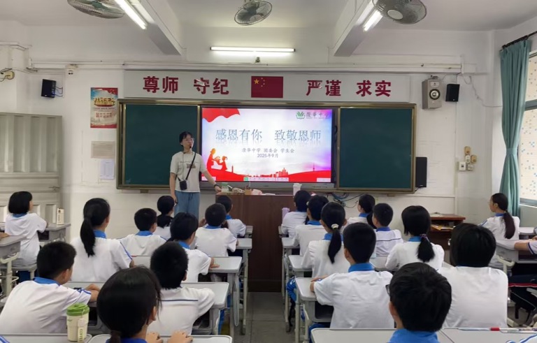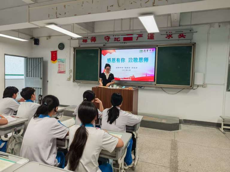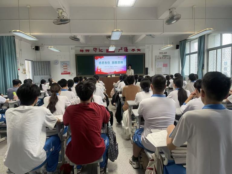 星期一,各班隆重举行“致敬师恩”主题班会。师生畅谈育人初心与成长感悟,动情之处,掌声雷动。“随风潜入夜,润物细无声”,老师们默默奉献的点滴,在这一刻被铭记于心,化为学子们前行的力量。