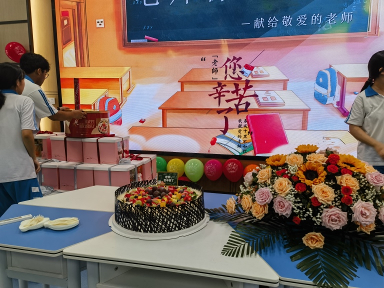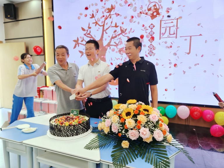 第三节课,“敬园丁”主题活动温馨启幕。师生齐聚一堂,共切蛋糕,分享小吃,畅谈育人理想与青春梦想。座谈会上,老师们分享教学心得,学子们倾诉成长感悟,欢声笑语中尽显“捧着一颗心来,不带半根草去”的师者情怀。