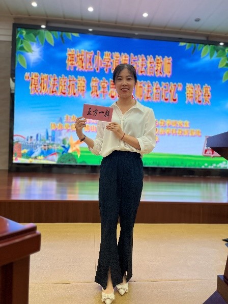 谭苑婷老师参加禅城区小学道德与法治教师“模拟法庭抗辩,筑牢思政教师法治记忆”辩论赛,荣获优秀辩手,所在队伍获优胜团队。