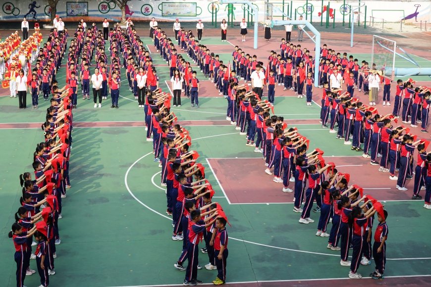 肇庆市百花园小学党支部书记、校长、少工委主任向新队员提出希望和要求寄语,激励全体少先队员好好学习,奋发向上,努力成长为能够担当民族复兴大任的时代新人!