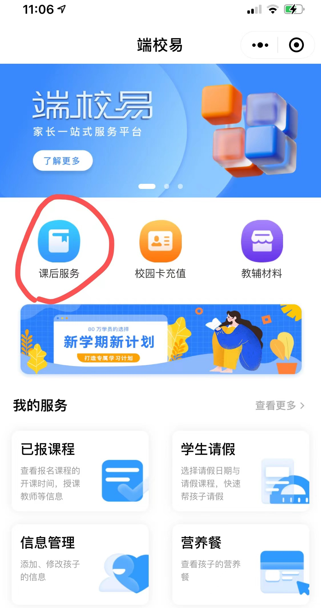 请有需要参加新学期课后服务而又未曾绑定过的家长请及时按照指引登陆“端校易”小程序绑定自家孩子信息。