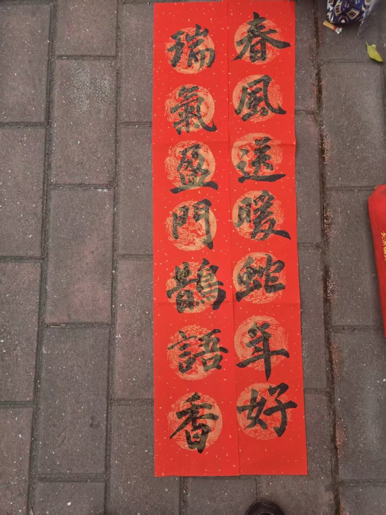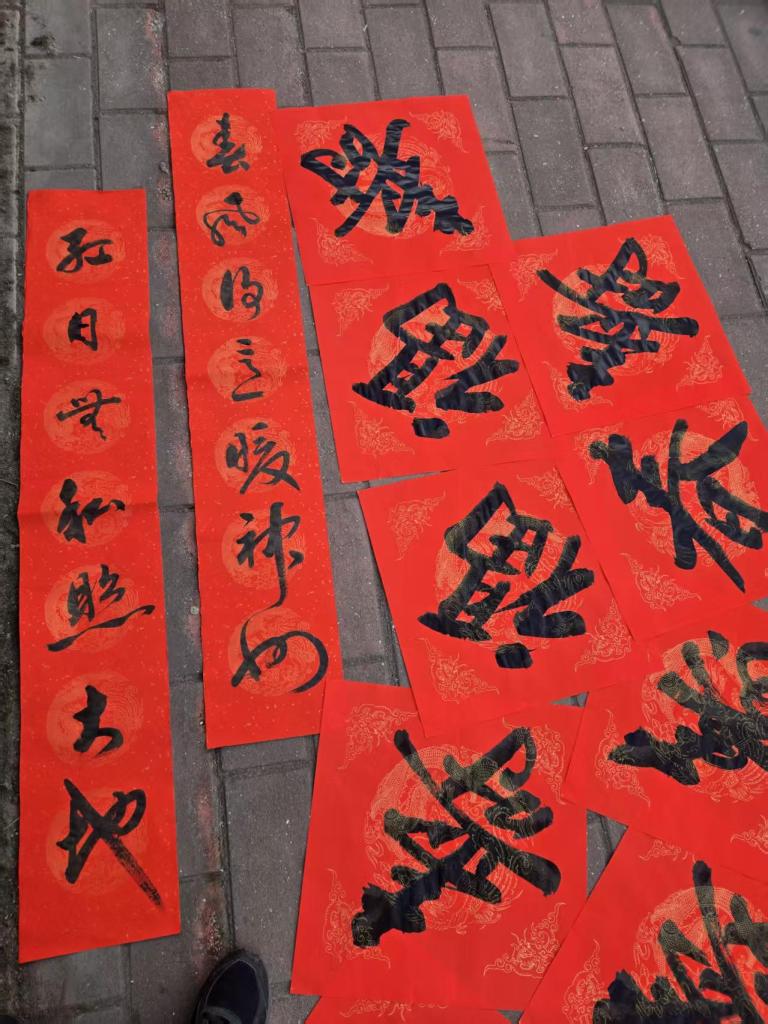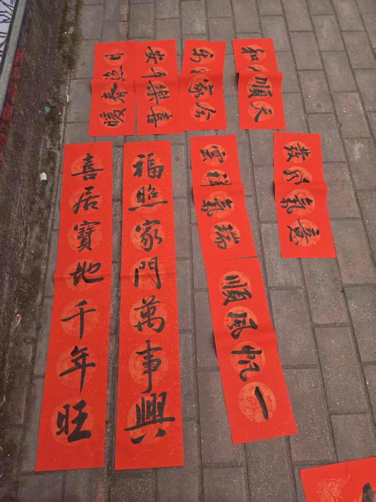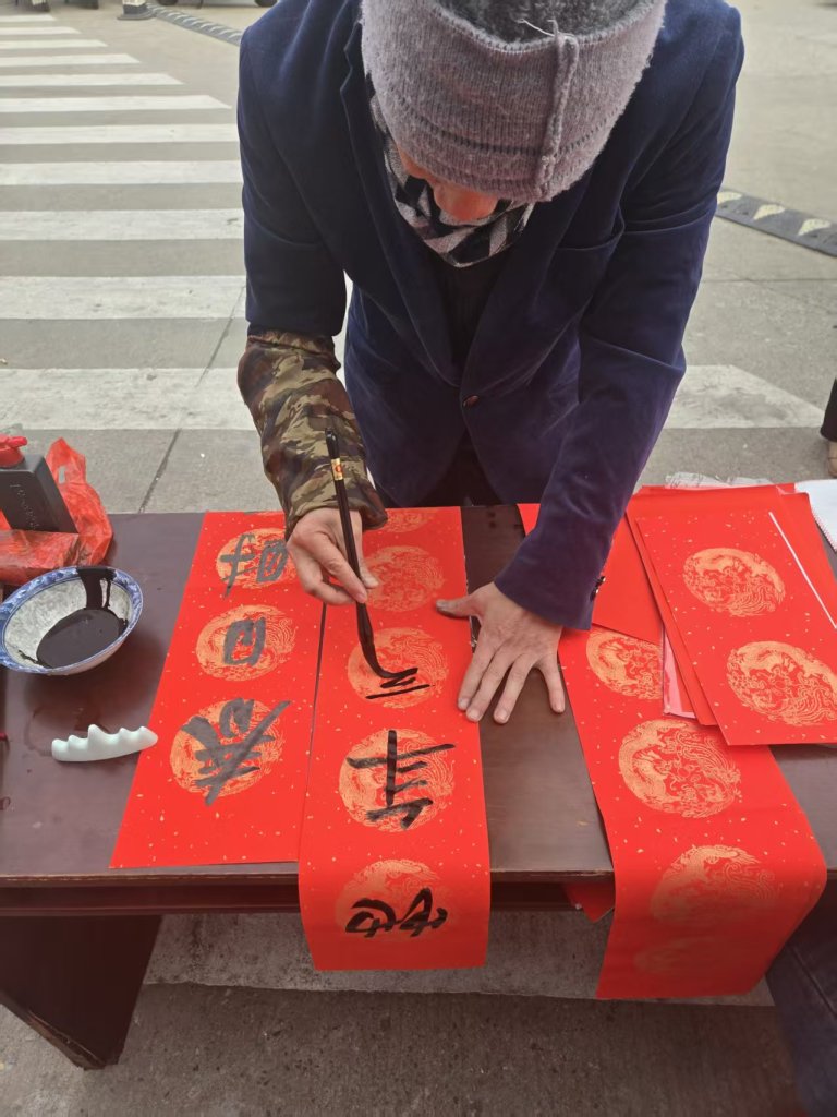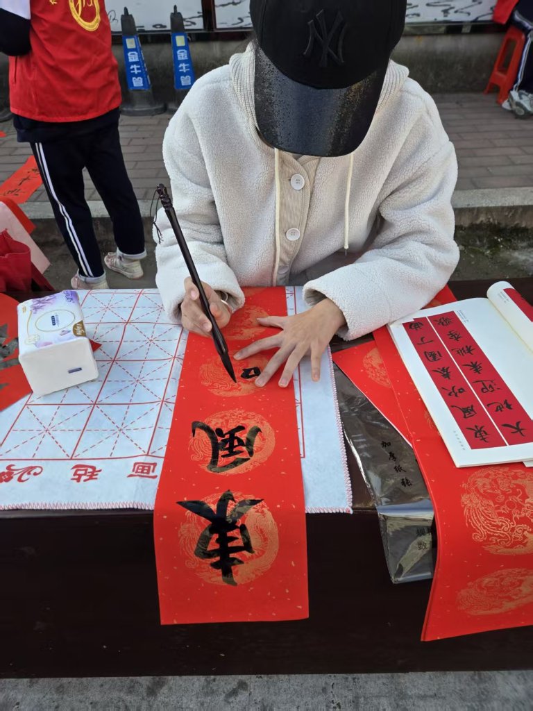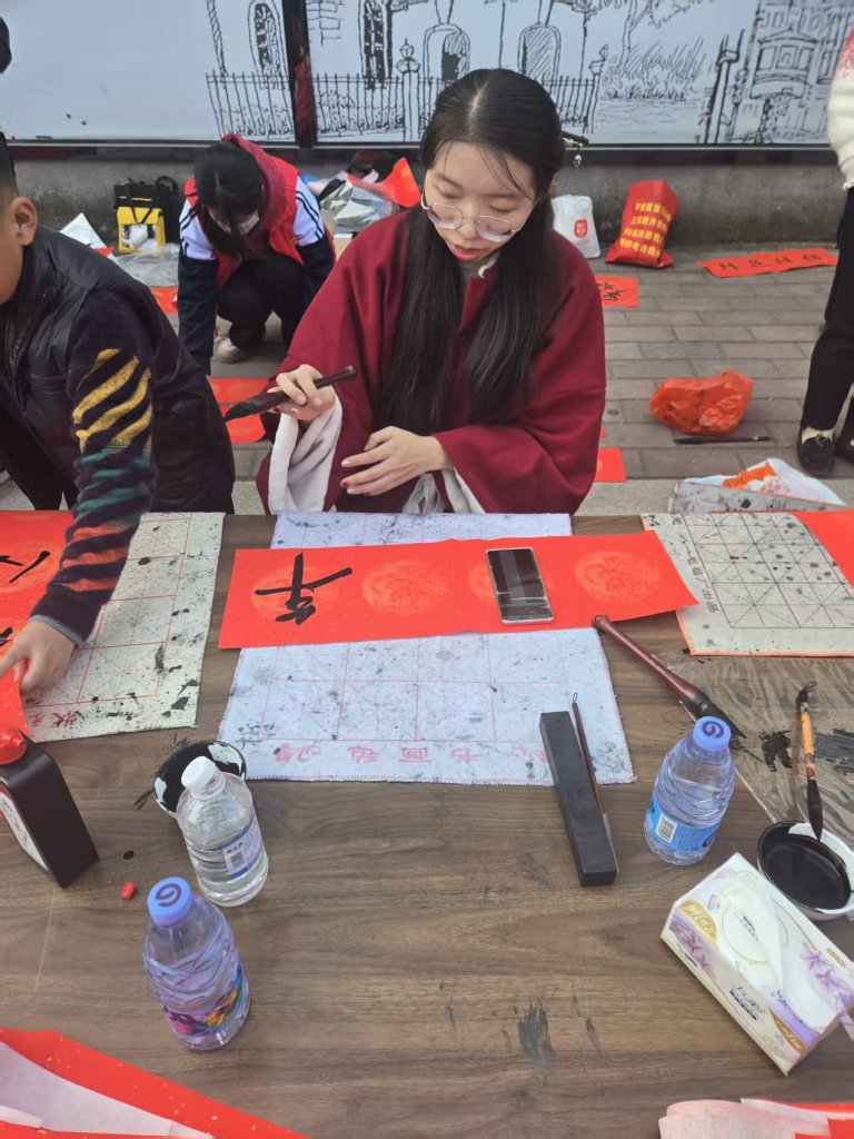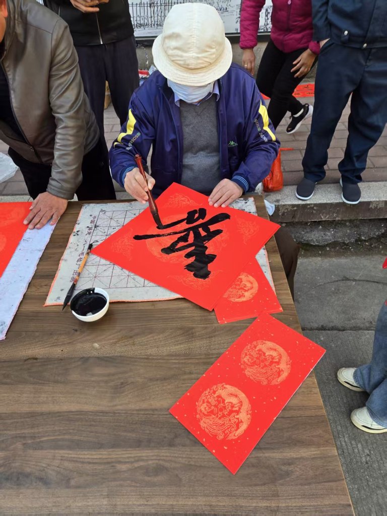 活动现场墨香四溢,一叠叠喜庆的红纸铺展得整整齐齐,师生们凝神聚力,将对新春的深切期盼融入这一副副春联与福字之中。村民们纷纷围在书写台前,细细品味着每一副春联,有的还现场定制春联内容,师生们也是有求必应,尽力满足大家的需求,为周边的居民群众送去了最真挚的节日问候。活动现场气氛火热,周边居民们闻讯赶来,挑选着中意的春联。此次活动共送出春联上百幅,不仅为居民们送去了物质上的新春装饰,更传递了精神上的温暖与关怀。