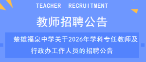楚雄福泉中学关于2026年学科专任教师及行政办工作人员的招聘公告(一)