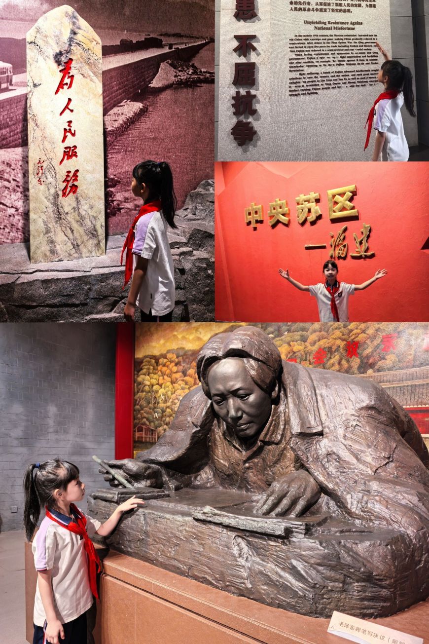 南昌八一起义纪念馆更是让孩子们感受到了“初心的力量”。在“起义枪声”复原场景前,同学们理解了原来人民军队就是从这里开始。小小的脚步踏过纪念馆的每一个角落,每一步都在与历史对话,每一步都在加深对“英雄”二字的理解。