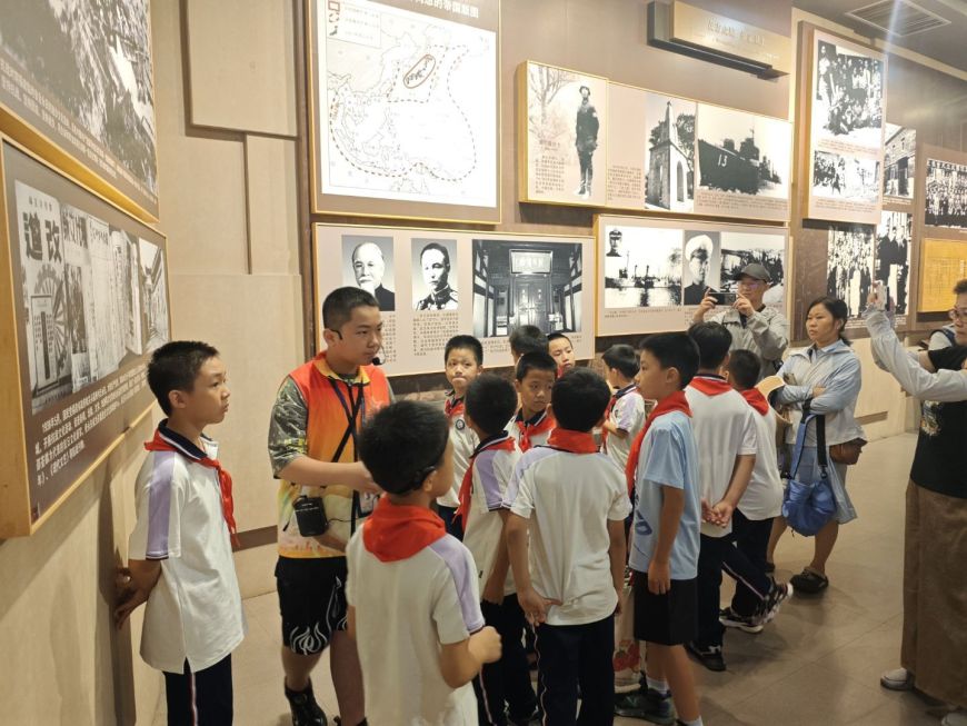 红领巾讲解员们讲述着自己的参观心得,他们用童言童语,把军号的故事、起义的热血、银幕里的勇敢,变成了能摸得着、学得会的"精神密码"。这些稚嫩却真诚的讲解,藏着最真诚的感动,是仓四小“探寻红色足迹”活动中最动人的收获。