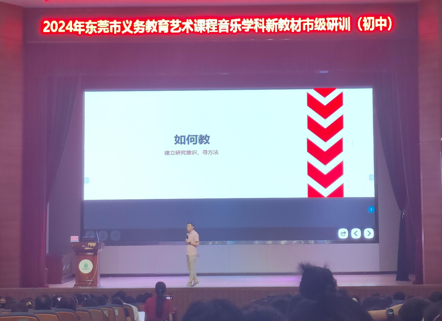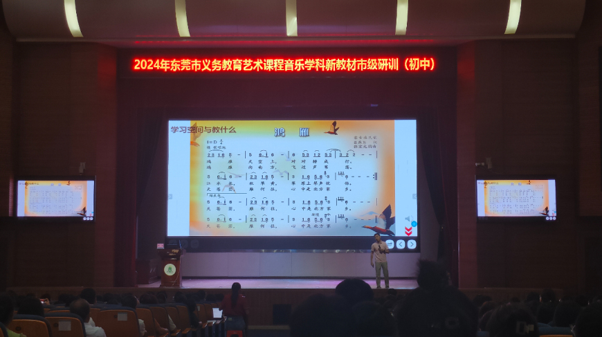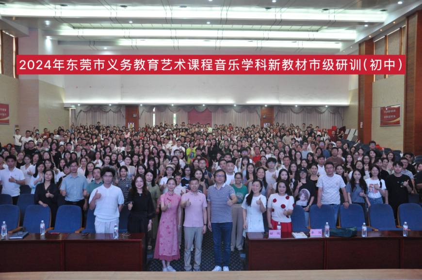 为扎实推进2024年东莞市义务教育艺术课程音乐学科新教材使用,全面落实立德树人根本任务,提高教师理解教材、应用教材的能力,2024年9月4日上午,东莞市义务教育艺术课程音乐学科新教材市级研训(初中)在东莞市寮步镇香市中学顺利举行。东莞市各镇街初中音乐教研员及一线教师共五百余人参与了此次培训。