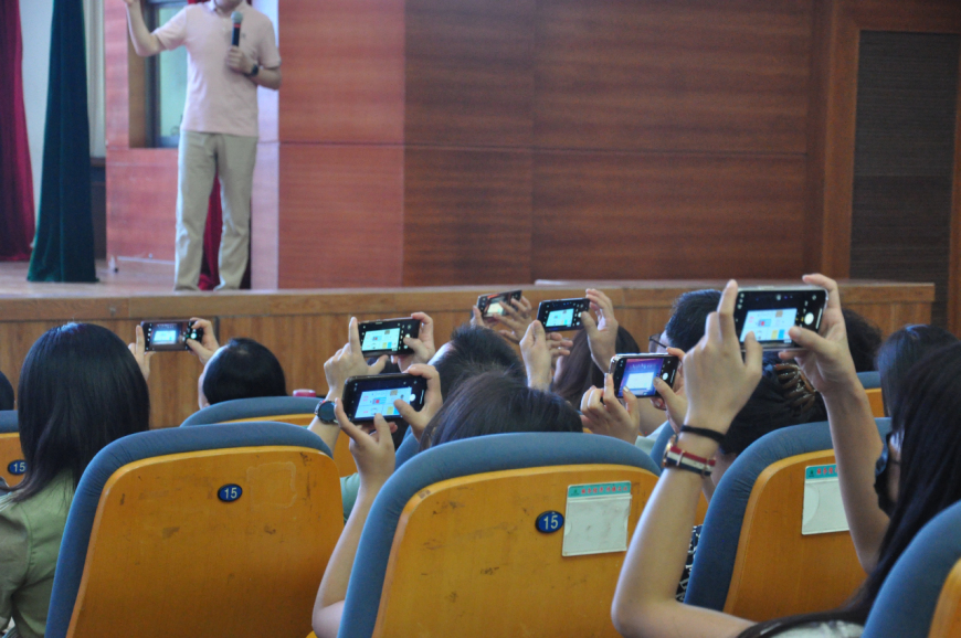 新教材配套的新课件是本次课程改革的亮点之一。胡老师现场为大家展示了配套课件的强大功能:具备唱谱、放大乐谱、简谱与五线谱相互转换、点名和随堂练习等诸多功能。老师们惊喜连连,掌声此起彼伏,一再欢呼叫好!此次课件系统更新幅度巨大,功能强大,无疑是东莞市初中音乐教师的一大福音。