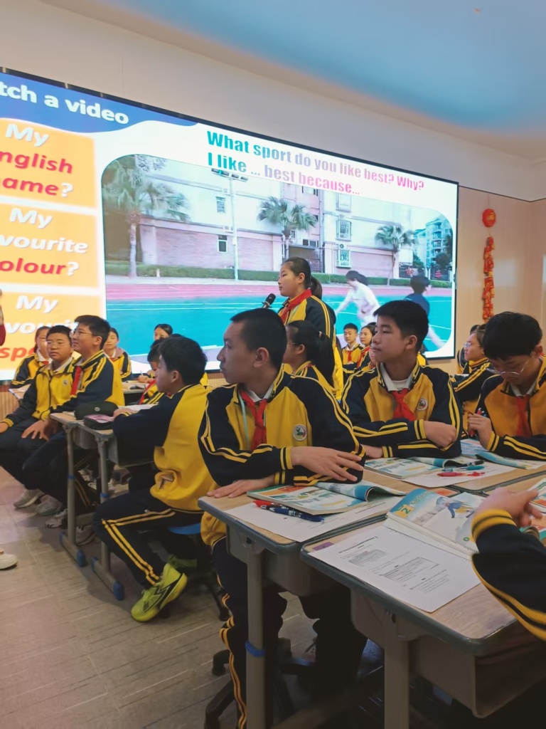 第一节课例展示由惠州市惠城区东湖学校林佳钿老师执教,执教内容是新教材七年级下册Unit 2 Go for it Period 1 Starting out & Understanding ideas。林老师以核心素养为根,以问题撬动思维,有条理、有层次逐步推进教学。林老师通过录制的视频来导入,巧用本单元的阅读语言材料,以“运动喜好”为主线展开教学。通过对马拉松运动的阅读剖析,助力学生将所学与真实生活产生链接,加深学生对运动与生活的理解。林老师优秀的语音语调、超强的教学组织能力和正面的课堂反馈不仅使同学们积极参与课堂,也令整节课精彩纷呈。