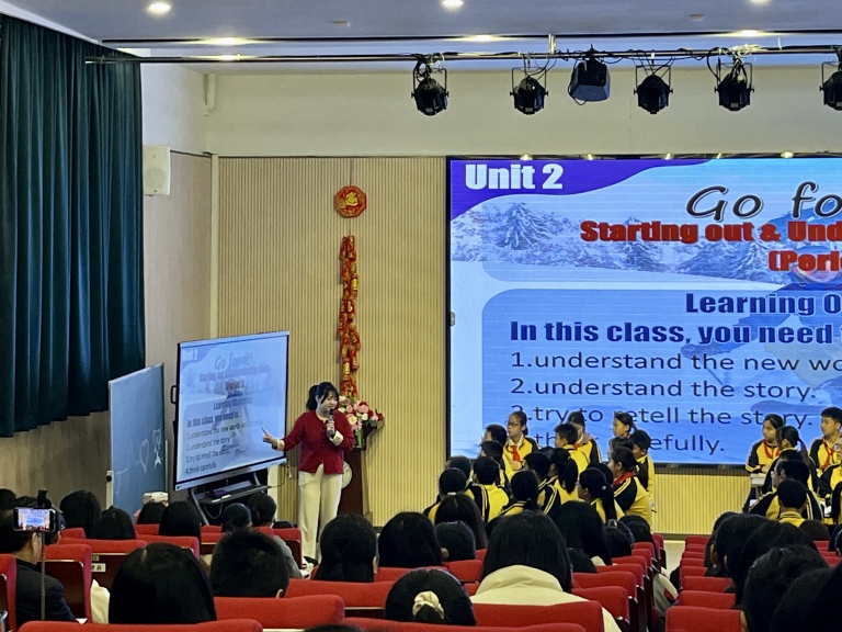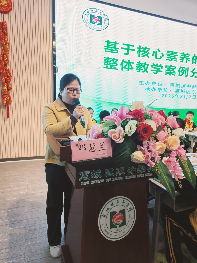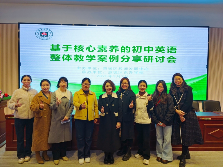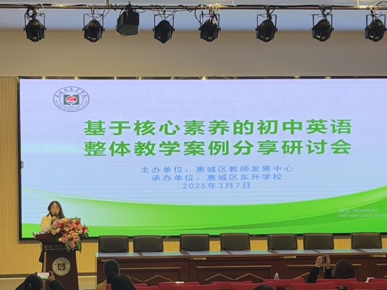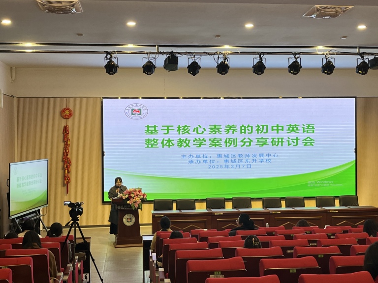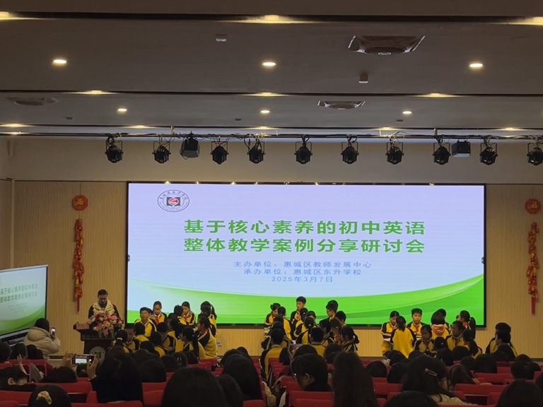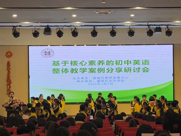 为了进一步提高我区初中英语教学水平,扎实推进对七年级新教材的研究与实践,2025年3月7日上午,基于核心素养的初中英语整体教学案例分享研讨会在惠州市惠城区东升学校隆重举行。惠州市初中英语教研员廖莹莹主任、惠城区初中英语兼职教研员邓慧兰老师、惠城区各校七年级骨干英语教师以及惠城区东升学校初中全体英语教师共同参加。活动由邓慧兰老师主持,分为校领导致辞、课例展示、说课评课交流、讲座引领和活动总结五个环节。