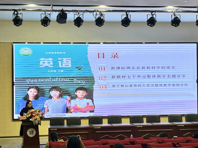 为贯彻新课标精神,更准确地把握新教材教学方向,惠州仲恺高级中学附属学校孙粤芬老师给大家带来了一场《外研版新教材的三重新境:解读、应用与教学蓝图》主题讲座。孙老师的讲座从新课标理念在新教材中的落实、新教材七下单元整体教学主题分享以及基于核心素养的大单元整体教学案例分析等方面展开,为推进对七年级新教材的研究与实践提供了宝贵的指导。